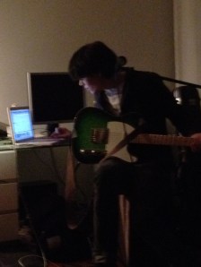Näiden esitysten jälkeen saimme nauttia myös elävästä musiikista. Musiikkiesityksestä vastasi Jarno Faarinen, jonka Fotoshop-nimellä tekemä musiikki on saanut erinomaisia arvosteluita. Lukekaapa Soundi-lehden arvostelu tästä. ”Mies, MacBook ja inspiraatio” Tässä pieni esimerkki: